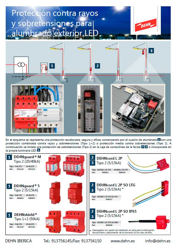 Protección contra rayos y sobretensiones para alumbrado exterior LED